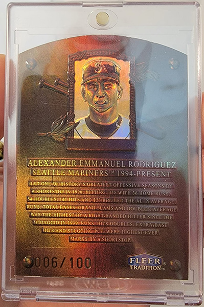 1999 Fleer Tradition Date With Destiny is a 10-card set that features some of the games best talent from the era. While not everyone on the roster has been inducted into the Hall of Fame, endless arguments exist in favor of the guys who haven’t. It doesn’t matter which side of the discussion you’re on because all of these guys had an impact on baseball during their time. These cards are quite beautiful as the design mimics the Hall of Fame plaques with a holofoil patina die cut and a stated serial number to 100. The design is as breathtaking is it is condition sensitive. With the foil going all the way to the edges, common grades land in the 5s and 6s with higher grades being exceedingly rare. Rare or graded, however, desirability remains strong with these and the trend continues with each passing year. With the prices where they are now, it’s hard to believe I found the Ken Griffey Jr. in a dollar box back in 2010. The likelihood of finding deals like this are long behind us.