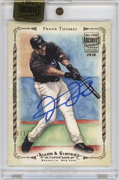 In 2016, Topps follows up with another installment of Archive Signature Series but again leaves us with the mysteries of how many cards and which ones of our player. Here’s a list of all known Frank Thomas cards from 2016 Topps Archive Signature Series. If you see something that’s not here, please let me know and I’ll add it.